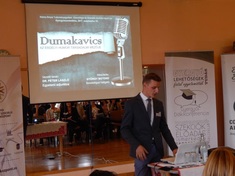 - György Botond (Gyergyóalfalu; BBTE, szociológia): „Dumakavics” – Az erdélyi magyar humor társadalmi mezője
